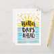 Ermutigen Sie jemanden in rauen Zeiten mit diesem fröhlichen handgeschriebenen Stil Typografie-Design mit der Botschaft in schwarz, Pinsel-Drehbuchstaben, "Better Days Ahead" umgeben von Aquarellsonne mit Rochen und Sternen und hellblauen Ozeanwellen.