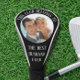 Ein lustiges, schwarzes Foto Golf Club Kopftuch für Ihren Golfer Mann. "Dieser Club gehört zum Besten Ehemann" ist in weißer Typografie um Ihr Foto herum geschrieben.