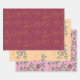 Set of roses, a Pattern of hand-drawn outlined roses on a dark pink background, a pattern of watercolors on a yellow background, and a pattern of water-colored roses on a light pink background, all of them with "best life ever" text that you can easily customize. Text is in a golden alike color.