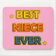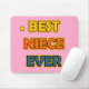 Muismat de tekst: Bestnichtssjje oit! Leuk als cadeau voor de beste nicht van de wereld. Kleuren: Gel, oranje en blauw. Met een gele ster in de kleur geel.