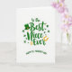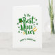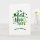 This card features the message “To the Best Niece Ever” centered in emerald green lettering on a bright white background, setting a sweet, close-knit tone 💚. Just below it, “HAPPY ST. PATRICK’S DAY” appears in a matching green, slightly arced line that neatly anchors the layout. A deep green leprechaun hat with a shiny gold buckle sits above the word “Best,” like a little wink that frames the compliment. Around the text, shamrocks in several shades of green drift across the space, giving the design a light, affectionate rhythm ☘️. Tiny gold starbursts are sprinkled between the clovers, adding small glints that feel like shared laughs tucked into the margins. Near the word “Ever,” a golden horseshoe curves in a bright yellow-gold tone, balancing the greens and drawing the eye to the final word. The overall arrangement keeps the focus on the niece message while the lucky symbols hover nearby like friendly company. The white background stays open and airy, with the green text in the middle, the hat above, shamrocks scattered around, and the horseshoe arcing close to the lower wording.