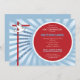 Ein religiöses Kreuz hinter einer Taube, die entlang der blauen und weißen Strahlen fliegt und in den roten Kreis geht, um die detaillierten Informationen über das kommende Ereignis zu sehen. Ideal, um Ihre Lieben als Ihre Einladung zur Bestätigung Ihres Sohnes zu geben.
