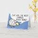 Lustige Abbildung eines Schafes auf einer Karte mit der Meldung auf der Vorderseite "Ewe are the best cashier baaa none!" Ein Wortspiel auf dem Bluten eines Schafes. Eine tolle Kartenidee, um ein berufliches zu loben. Personalisieren Sie das drinnen mit Ihrer eigenen Nachricht.