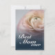 Nah-up von rosa Rosa Rose auf blauem Hintergrund und Muttertag Grüße. Die Erholung der Karte ist frei zu gestalten.