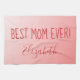 Ideal für den Muttertag, Mama's Geburtstag, oder die Ferien in diesem Design mit einem rosa ombre Hintergrund. "Beste Mama je" wird in leuchtend rotem Schriftart angezeigt. Eine Vorlage zum Einfügen eines Namens in einen wunderschönen kursiven Schriftart ist direkt darunter. Bestellen Sie noch heute Ihr Küchentuch!