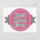 Niedliche Best Mama Ever Etikettendesign in Rosa und Grau mit weißer Naht. Ein süßes Geschenk für deine Mutter am Muttertag oder an ihrem Geburtstag.