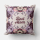 Dieses Lavendelkissen ist mit einem Blumenmuster mit rosa, lavender, bordeauxfarbenen und goldenen Blume gestaltet. Das Blumendesign enthält Rose, Lavendel und Blätter. Die beste Mama befindet sich im Zentrum in Bordeaux in einem Retro-Script-Schriftart. Das Kissen ist ein Polyester 20" von 20" werfen Kissen.