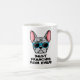 Diese französische Bulldogin-Tasse ist das perfekte Muttertagsgeschenk für jede französische Mama. Das Design zeigt eine Cartoon-Style-Abbildung eines blauen, mergelfarbenen französischen Bulldoggen, der eine Sonnenbrille trägt, mit der Formulierung "Beste französische Mama je!". Das Design ist auf beiden Seiten der Tasse gleich, und der Wortlaut kann nach Belieben geändert werden. Verschiedene französische Bulldoggen-Versionen sind ebenfalls erhältlich.