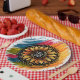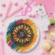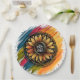 Beste Mama Party Teller mit einer lebendigen, besten Mama-Text in der Mitte, umgeben von farbenfroher Sonnenblumenkunst