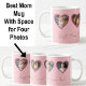 Entwerfen Sie Ihre eigene Foto-Tasse mit dieser niedlichen rosa Fotovorlage mit Platz für 4 benutzerdefinierte Fotos. Laden Sie Ihre Lieblingsbilder hoch und passen Sie den Namen mit Ihrer Personalisierung an. Ein tolles Geschenk für die Mama, wenn Sie Ihre eigenen Fotos der Kinder oder Haustiere hinzufügen! Ein rosa Cover mit einem Hintergrund aus dem Glitzer auf den Vorlagen für Herzklopfen.