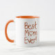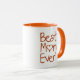 Schöne handgeschriebene beste Mama-überhaupt Tassen. Orange und Weiß mit Herzen.