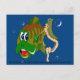 Postkarte mit einem Wurm, der einem Fisch Bargeld zum Beißen des Hakens gibt.