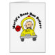 Ein großer, gelber Schulbus mit einem Strichmännchen-Busfahrer und Text, der auf Busfahrergeschenken, T - Shirt und anderen Gegenständen "Worlds Best Bus Driver" steht.