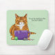 Orangefarbene Katze mit Spielzeug und lila Kaffee-Tasse, die erklärt, dass sie den perfektesten Katzenpapa aller Zeiten haben!