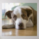 Adorable Hundfotografie mit Hunden seelenvollen Blick auf die Kamera, während er Erholungen auf dem Boden.