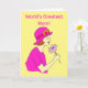 Illustration einer Frau, die einen rosa Hut und ein rosa Kleid trägt und eine rosa Blume hält. Die Nachricht lautet "Welt's Greatest Mama" und in "Happy Mother's Day". Bearbeiten Sie den Vorlagentext einfach, um diese Karte zu personalisieren. Danke, dass du mir meine Entwürfe angesehen hast!