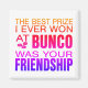 Moderner typografischer Stil Text für Ihren Bunco besten Freund. Bunco Würfel Stimmung lautet: Der beste Preis, den ich je bei Bunco gewonnen habe, war deine Freundschaft. Farbenfroh und nur für Bunco-Spieler gemacht. Großartig als Freundschaftsgeschenk.