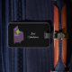 Ein klassisches Etikett für Reisen mit einem lila Armstuhl, das wiederhergestellt wurde. "Bester Polsterer" heißt es, das kann nach Wunsch geändert werden.