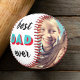 Feiern Sie den besten Papa aller Zeiten und Baseball-Fan mit diesem personalisierten Baseball mit 2 Fotos seiner Kinder und "VATER" geschrieben in lustigen roten und aquamarinen Retro-Typografie.
