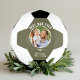 Bester Vater je Foto Vatertag Keepake Soccer Ball. Ein Bild in einem Kreisrahmen auf einem dunkelgrünen Hintergrund. Fügen Sie Ihr Foto, Text und Jahr hinzu. Ein perfektes Geschenk und ein süßer Sake für Vater oder Großvater.