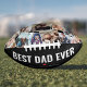 Coole Väter-Tagesfußballgeschenk mit stilvollem schwarzem Hintergrund, der in jede beliebige Farbe verändert werden kann, einer Foto-Collage mit 12 Familienbildern, die Sie durch Ihr eigenes ersetzen können, dem Sprichwort "BEST VATER EVER", einem niedlichen roten Herz und den Kindernamen.