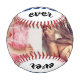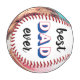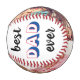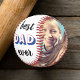 Feiern Sie den besten Vater, der je ein Baseballfan ist, mit diesem maßgeschneiderten Baseball mit zwei Fotos seiner Kinder, "VATER" in cooler rot-blau Retro-Typografie und Familiennamen und das Jahr als Signatur.