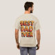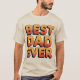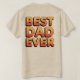 Dies ist ein trendy Best Vater Ever T - Shirt. Dieser T - Shirt zeigt Best Vater Ever in Retro-Orangenbriefen. Die Buchstaben sind große dicke Retrobuchstaben. Die Buchstaben haben einen orangefarbenen Verlauf. Der T - Shirt ist eine Sandfarbe. Das beste Vater-Ever-Bild befindet sich auf der Vorder- und Rückseite des T - Shirt.