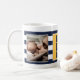Alles Gute zum Tag des Vaters! Moderne Best Vater je Coffee Tasse. Mit Navy Blue und White Stripes und einem personalisierten Navy Blue Monogramm. Fügen Sie 2 Fotos hinzu! Der größte Vater der Welt! Kontaktieren Sie mich, wenn Sie Hilfe beim Anpassen Ihrer Kaffee-Tasse benötigen!