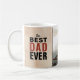 Bester Vater je Wasserfarbe Vaterfarbe Foto Kaffee Tasse. Roter, orangefarbener Hintergrund mit Text in trendiger Typografie. Fügen Sie Ihr Foto hinzu und passen Sie die Nachricht und die Namen an. Für einen Vater oder Großvater zum Geburtstag oder zum Geburtstag des Vaters.