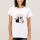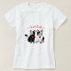 Ein weißer T - Shirt mit einem grafischen Design, das eine schwarz-weiße Katze und einen schwarz-weißen Hund nebeneinander darstellt. Beide Tiere haben ein rotes Herz auf der Brust. Über ihnen, in rot kursiv, ist der Satz "Beste Freunde" mit einem kleinen Herz in der Mitte.