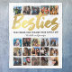 Personalisierte begabte Freunde fleecy Decke mit einem stilvollen weißen Hintergrund, der in jede Farbe geändert werden kann, das Wort "besties" in einem Imitat Gold-Folie-Script-Schriftart, ein Freundschaftsangebot, Ihre Namen und eine 20 quadratische Foto Collage Vorlage für Sie, um sich an Ihre eigenen...