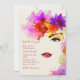 Eine atemberaubende Einladung, die eine teilweise Ansicht des Gesichtes einer Frau umgeben mit Losen Blendung, bunte Blumen kennzeichnet.