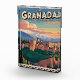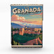 Mit diesem Vintagen Reiseplakat von Granada, Spanien, können Sie die Zeit verbringen. Die Alhambra und die Sierra Nevada sind in warmen andalusischen Farben gehalten. Ideal für Reisende, Spanier und Liebhaber der Retro-Kunst.