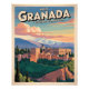 Mit diesem Vintagen Reiseplakat von Granada, Spanien, können Sie die Zeit verbringen. Die Alhambra und die Sierra Nevada sind in warmen andalusischen Farben gehalten. Ideal für Reisende, Spanier und Liebhaber der Retro-Kunst.