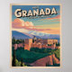 Mit diesem Vintagen Reiseplakat von Granada, Spanien, können Sie die Zeit verbringen. Die Alhambra und die Sierra Nevada sind in warmen andalusischen Farben gehalten. Ideal für Reisende, Spanier und Liebhaber der Retro-Kunst.