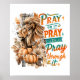 Friedliches, farbenfrohes Design mit einer Herbst/Herbst-Szene mit majestätischen Löwenkopf, Kürbisse und Herbst-Blume. Der farbenfrohe inspirierende Text lautet: "Betet darauf, betet darüber, betet durch ihn". Dieses Design ist auf einer Vielzahl von Produkten erhältlich.