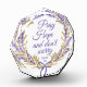 Dieser Christliche Foto-Block hat einen eleganten lila Blumenkranz mit Bogen und ein inspirierendes Zitat von St. Padre Pio: Betet Hoffnung und mach dir keine Sorgen.