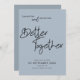Ein modernes, informelles Design, um Ihre Gäste fragen, um Ihre Hochzeit mit einem handgeschriebenen Stil Black Set Skript für Better Together in der Mitte retten, um sich mit dem "und" im gleichen Set Drehbuch zwischen Ihren Namen zu koordinieren. Die Erholung des Textes kann leicht personalisiert werden. Auf der Rückseite ist ein dunkelblauer Hintergrund. Text- und Hintergrundfarben können in eine andere Farbe geändert werden, wenn Sie über die Option Weitere Einstellungen wünschen.