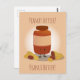 Carte postale avec dessin illustré d'un pot souriant de beurre d'arachide qui se tient entre deux piles d'arachides. Les mots "Beurre d'arachide ? Peanut Better !" montre ci-dessus et en dessous du personnage de dessin animé. Tous les mots peuvent être customisés.