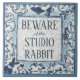 "Vorsicht vor dem Studio Rabbit" liest dieses Kachelzeichen oder Trivet. Jeder Hasen-Liebhaber wird das schätzen! Meine Hand lackierte blau-weiße Fliesen-Design sieht aus wie alte gekrackte Delft-Fliesen, und die Rahmen & bunnies erinnern an alte Töpfermotive Dedham. Original Kunst & Design von Tuzi Williams.