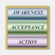 Magnet mit Worten Sensibilisierung Akzeptanz Aktion auf 3D-förmigen horizontalen Bildern, umgeben von goldfarbenen Rahmen. Sie können ihn anpassen, indem Sie Ihren eigenen Text hinzufügen