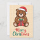 Dieses zauberhafte Design zeigt einen bezaubernden braunen Bären mit einer Weihnachtsmütze und einem roten Festgeschenk mit weißer Erbse, umgeben von einer bunten leuchtenden Guirland. Mit seinem freundlichen und freundlichen Ausdruck verkörpert dieser Teddybär perfekt den Geist der Feiertage. Die Erwähnung 'Merry Christmas' in einem klassischen Stil in rot und grün fügt einen universellen Festakt hinzu, der ideal ist, um die Weihnachtsfreude zu verbreiten. Perfekt für verschiedene Produkte wie Weihnachtskarten, T-Shirts, Mugs, und viel mehr, dieses Design ist so gestaltet, dass es während der Partysaison klein und groß lächelt!