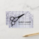 Eine herrliche, bezaubernde Geschäftskarte, die Tonnen silberne Glitzern mit einer großen, schwarzen Silhouette eines Paares Scheren/Scheren kennzeichnet. Vervollkommnen Sie für Haar-Stylisten, Hairstylists, Haaraufbereiter, Cosmetologists, Cosmetology, Salons und mehr!