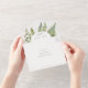 Diese Einladung vereint den Zauber einer Waldlandschaft mit einem zarten botanischen Aquarellrahmen mit Bohbogen-Form aus üppigen Waldfarnen in tiefen Waldgrün und sanften Salbei-Tönen. Das handbemalte Aquarelldesign erinnert an ein Gefühl zeitloser Romantik und natürlicher Eleganz, perfekt für Hochzeiten im Freien, im Garten oder im Wald. Diese Einladung, die mit Bequemlichkeit entworfen wurde, fügt sich in einen wunderschön gestalteten Rahmen ein, der Einfachheit und Eleganz verbindet. Laden Sie Ihre Lieben ein, an Ihrem magischen Tag teilzunehmen, mit einer Einladung, die die bezaubernde Atmosphäre Ihres Festes widerspiegelt.