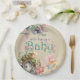 Diese zauberhaften und skurrilen Baby-Dusche-Teller bieten ein bezauberndes Waldthema. Ein Bild einer Feentür in einem kleinen Pilzgarten befindet sich ganz unten, über dem eine Märchengestalt liegt. Der Hintergrund ist ein Vintages, verblasstes Pergament-Papiermuster.