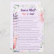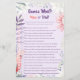 Mit dieser eleganten zweiseitigen Spielkarte können Sie Ihre Veranstaltung mit einer unvergesslichen und unterhaltsamen Aktivität bereichern. Diese Karte zeichnet sich durch ein skurriles, florales Aquarelldesign und einen zauberhaften Galapapagei auf der Rückseite aus. Der Name auf der Rückseite der Karte (Scroll runter, um den Platzhalter zu finden), die Farben, die Fragen und die Schriftart sind für Sie bereit, um sich anzupassen, sodass es eine perfekte Möglichkeit, Ihre Gäste unterhalten und eine angenehme Ergänzung zu Ihrem Party Schreibwaren. Entdecken Sie mehr passende Produkte aus dieser Kollektion! ©Susanne Sachers - Sunny Mind 🌞