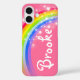 Hübscher Regenbogen mit weißen Sternen auf einem rosa Himmel Design personalisierten Gehäuse. Dieses Beispiel liest Brooke. Exklusiv von Sarah Trett für www.mylittleeden.com entworfen und illustriert
