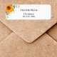 Die Sonnenblume in Aquarellen, Eukalyptusgrün und die Imitate sind goldgelb. Personalisieren Sie Ihren Namen und Ihre Adresse und fügen Sie diese hinzu. Schwarze Buchstaben.