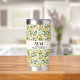 Ein Aquareller mit Zitronenhintergrund. Personalisieren und fügen Sie Ihre Monogramm-Initialen und vollständigen Namen. Schwarzer Text.