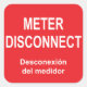 Ein Blatt mit sechs, 3" x 3" METER DISCONNECT Aufkleber mit spanischem Untertitel. Desconexión del medidor.
